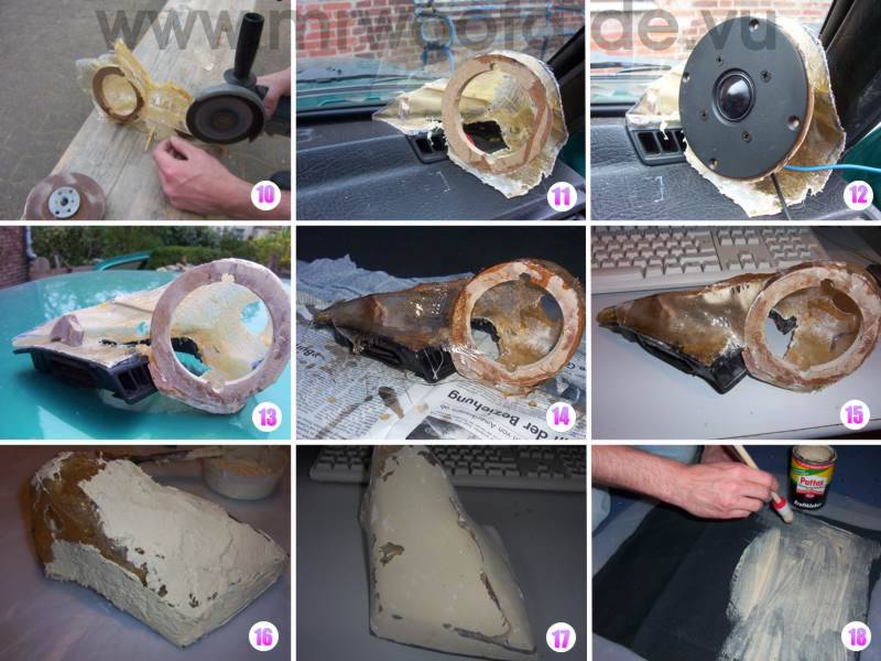 Wie schon in Golf 2: Stufe 3 angekündigt, hier nun eine Fotostory, wie man mit GFK Behausungen für Hochtöner aller Art selber baut.