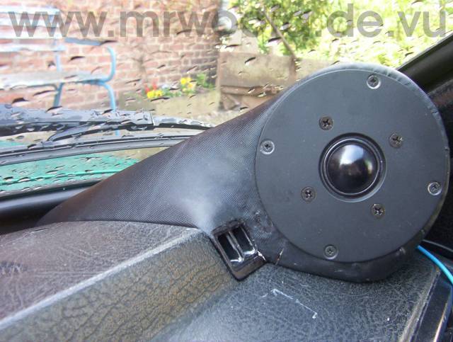 12. Test, ob der Hochtöner immer noch reinpaßt. Ich mußte zur A-Säule hin eine kleine Ecke wegflexen.