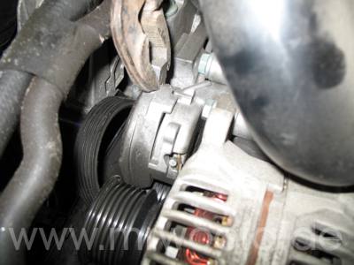 Die Gewindebuchsen an der LiMa stecken übrigens nicht fest in dem Aluguß-Teil, sondern ziehen sich beim anschrauben noch etwas, also keine Panik kriegen wenn die neue LiMa ein paar mm Spiel im Halter hat, das gibt sich beim anziehen der Schrauben. Dann den Riemen wieder korrekt über alle Rollen legen und den Spanner wieder mittels Zange oder Rohr entspannen, Nagel entfernen und an den Riemen drücken lassen. Dann Batterie und das zusätzliche Stromkabel wieder anklemmen. Fertig.