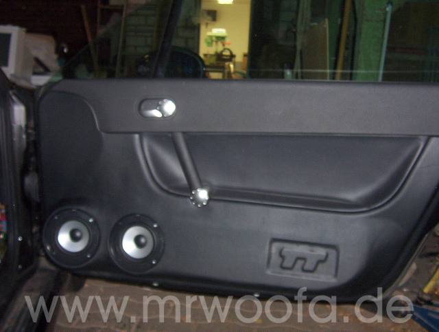 1. Zoom Die Tür im Audi TT (und auch im A3 soll sie ähnlich sein) ist alles andere als einbaufreundlich. Ein Rahmen für die Tür, und da hinein ist ein Aluminium-Instrumententräger geschraubt. Aufgrund der vielen Zerklüftungen, und weil nichtmal der Rand vom Türblöech gerade ist, scheiden allgemeine Konstruktionen wie mit Grundplatte etc. aus. Auch das ablaminieren der Tür mit GFK ist zum Scheitern verurteilt, da die Verkleidung um sie abbauen zu können um ca. 3cm nach oben geschoben werden muß. |
