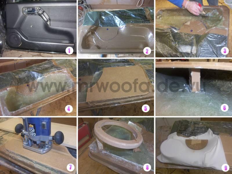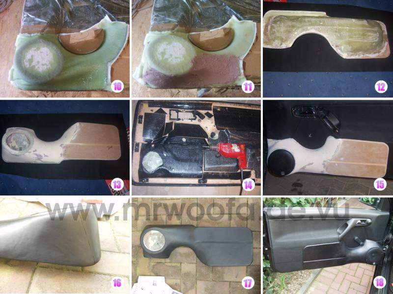 In einer einmalig krassen Aktion habe ich mit CHUCKY (ist u.a. oft im VTC-Car-HiFi-Forum) zusammen in nur 2 Tagen ein komplettes Paar Doorboards gebaut. Verbaut werden hier Xetec G-6 Tiefmitteltöner. Bedingt durch etliche dumme Zwischenfälle (Härter ausgegangen, defekt der Sprühkleberdose) haben wir's trotz etwa 23 Stunden Arbeit nicht mehr geschafft, die Boards noch zu beziehen. Das macht er dann zu Hause.