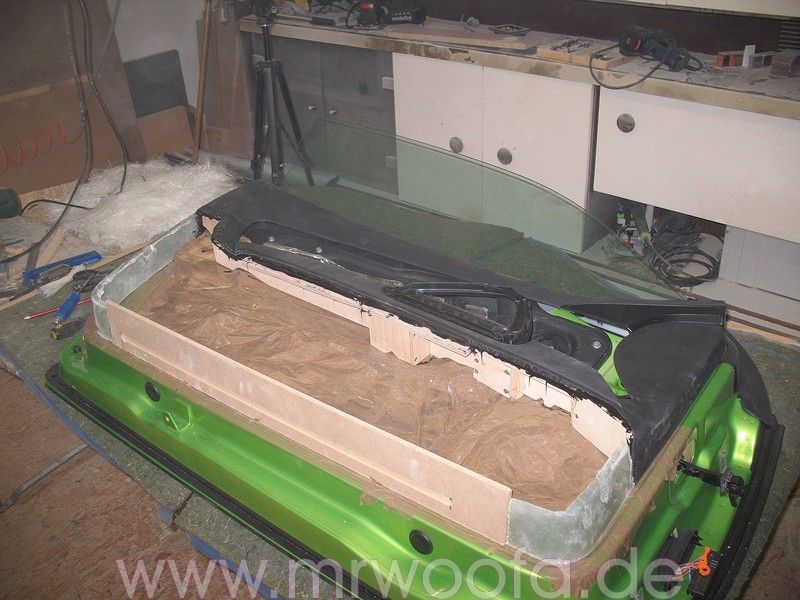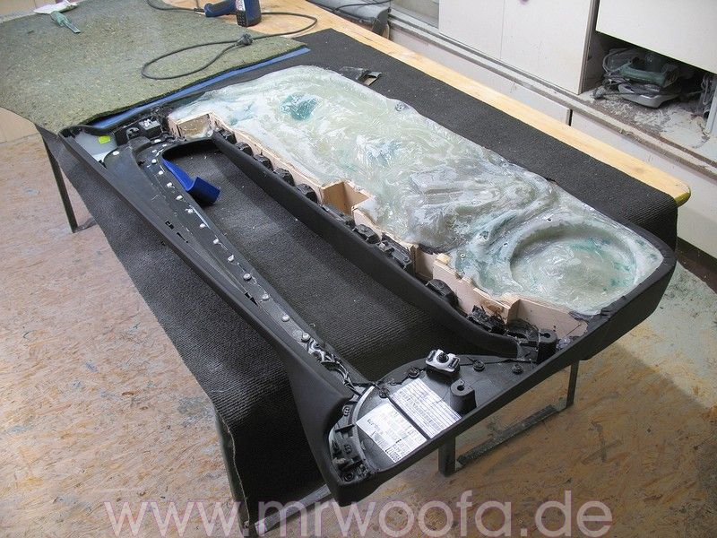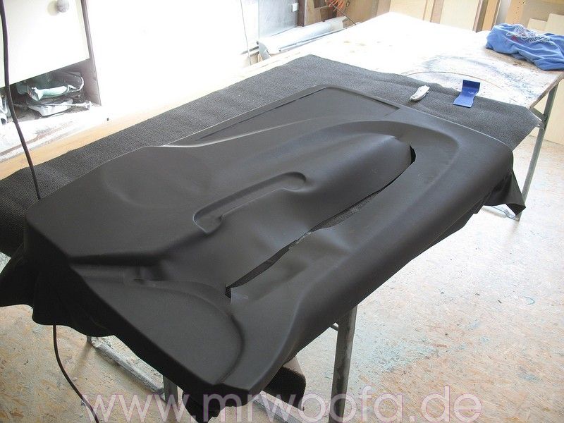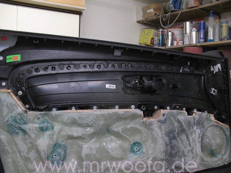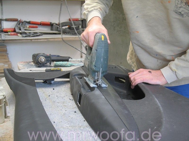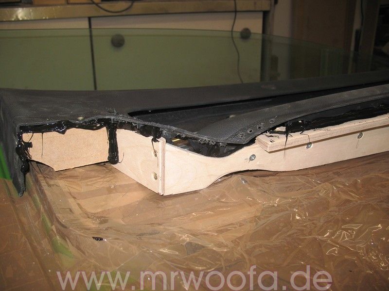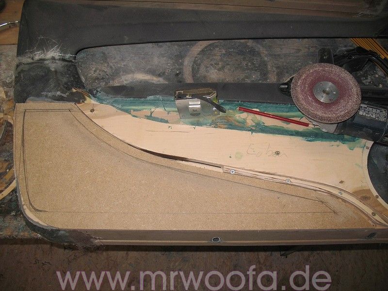 Auf jeden Fall daran denken, das man für die Fensterheberschalter und die dazugehörigen Stecker sowie für den Haltegriff Aussparungen vorsieht! Mindestens im Bereich wo später der Lautsprecher ist sollte man eine vorstehende Kante machen, wo das diesen tragende Brett aufliegt und verschraubt werden kann.