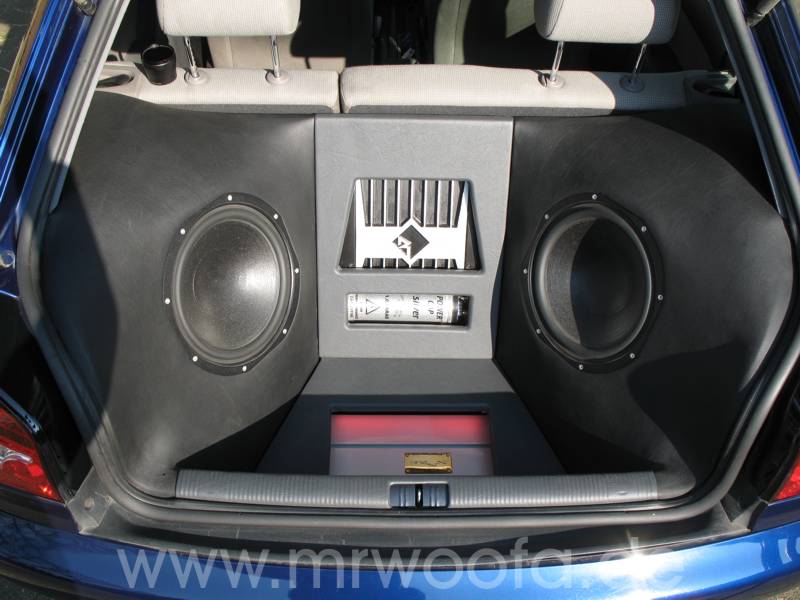 7. Zoom In die Reserveradmulde wandern noch 2 MXM Silvercaps, und die BRAX X2400.2 auf einem Podest. |
