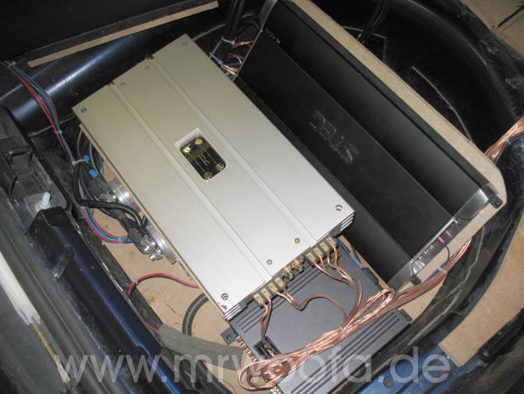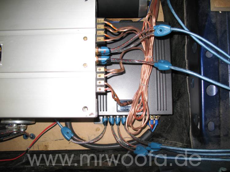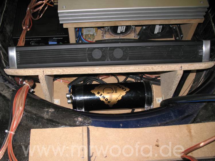8. Zoom Hier verbauten Frequenzweichen, sitzen hinter der Rockford, der Cap ist zusammen mit dem sichtbar verbauten für die RF zuständig. |