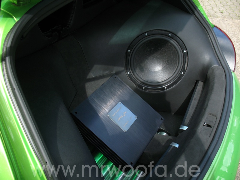 Während die anderen Umbauten im Scirocco zu 90% aus klanglicher Sicht erfolgten, ist der Aufwand im Kofferraum fast komplett der Optik zuzuschreiben. Eine solide gebaute Subwooferkiste sowie Stromversorgung und Endstufen in einem doppelten Boden hätten es klanglich genauso getan. Aber das wäre ja zu einfach – und zu unauffällig...