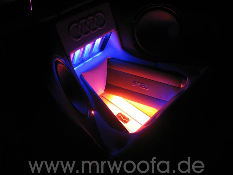 Und noch ein wenig Budenzauber, Unterbodenbeleuchtung ist ja leider nicht erlaubt, aber immerhin Untertürbeleuchtung :)