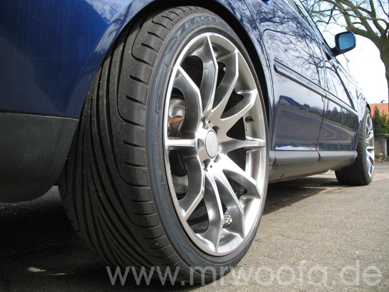 Alus Sommer: Tomason TN1 in 8,5x18 ET30 mit Goodyear Eagle F1 asymmetric in 225/40ZR18, hinten zusätzlich 5mm Distanzscheiben