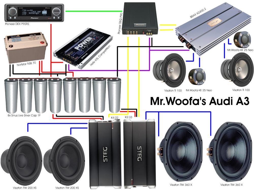 Habe jetzt nen 4-fach Mini-ANL Halter von audison, wo es mit nem 70mm² von der Batterie reingeht, unten ist nen 50mm² für die neue Zuleitung zur LiMa mit 150A, darüber die Zuleitungen in 35 und 50mm² zum Subamp / zur Brax/Steg mit jeweils 80A abgesichert.