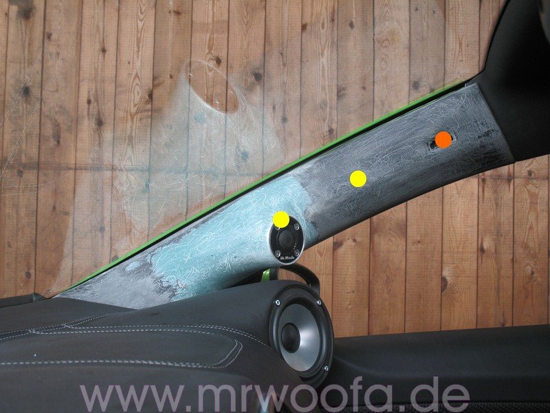 die A-Säule von oben abziehen, an den gelb markierten Stellen sind