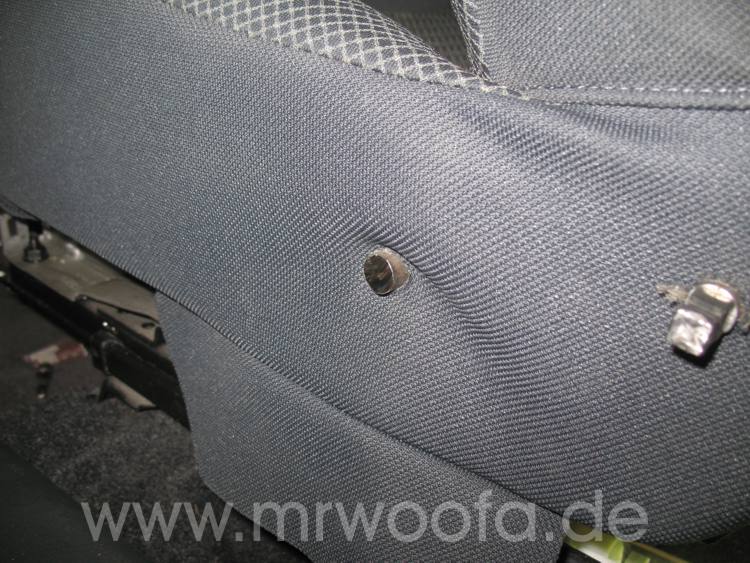 Was auf der Beifahrerseite wunderschön paßte, erwies sich auf der Fahrerseite schwieriger, da hier der Sitz eine Höhenverstellung hat und eine 3cm breitere Kunststoffabdeckung, die aber schnell entfernt ist. Um den Sitz weiter nach vorne stellen zu können, mußte der Hebel verschwinden - leider wars nix mit abbauen, also mußte die Flex ran.