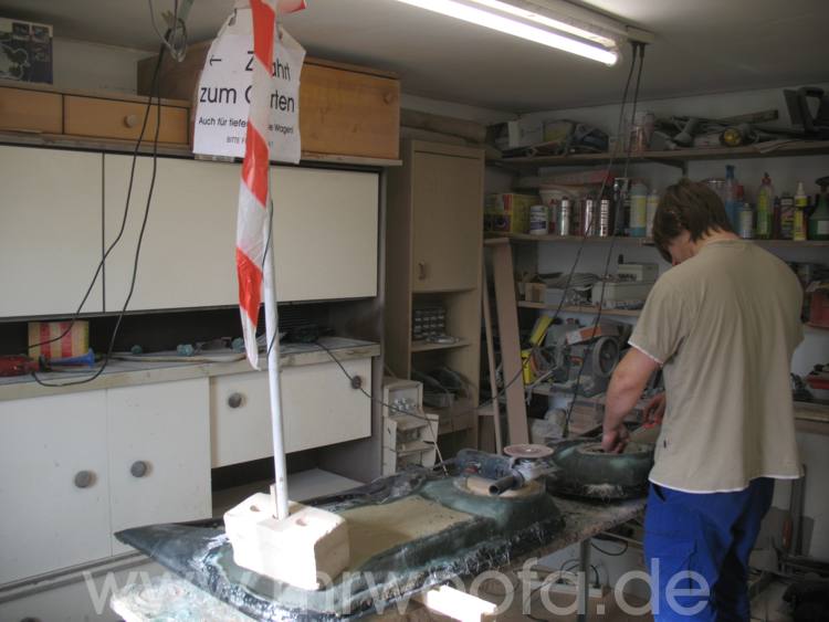 Ca. 1kG Harz geht drauf um das Vlies zu tränken, an den größflächigen Stellen habe ich zur bessern Haltbarkeit ein paar Glasfasermatten aufgelegt,