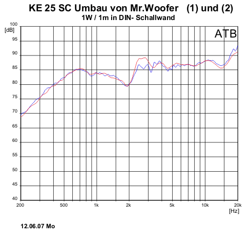 Zu bemängeln habe ich noch die Impedanzspitze bei gut 2kHz sowie der dazugehörige Klirr, dies sind Baßreflexeffekte durch die Bohrungen im Magnetsystem, daran wird aber gearbeitet, habe da quasi schon eine Lösung für.