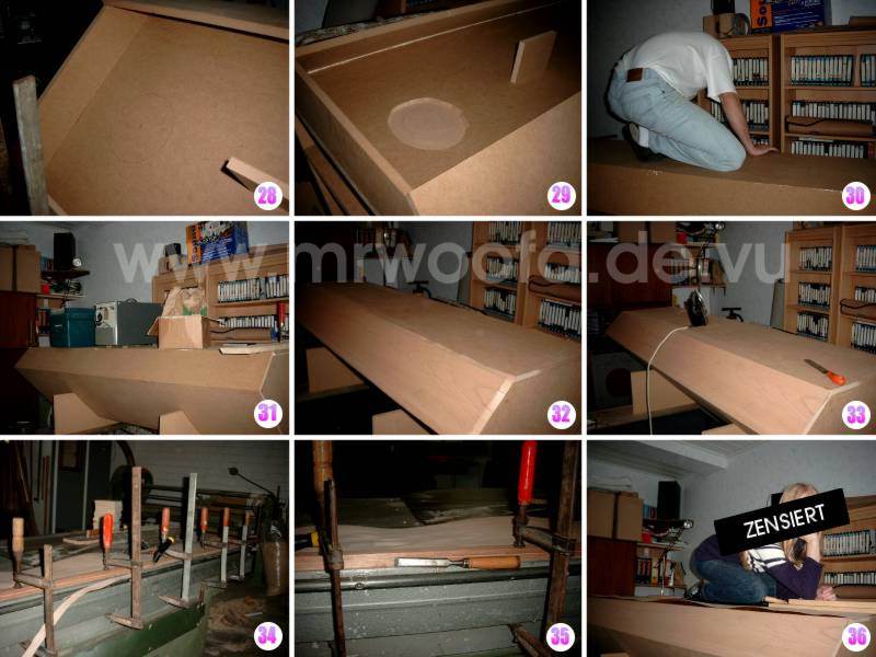 22. Nun denSub auf die andere Seite legen um das Trapezbrett zu verleimen. Zuerst nochmal gucken, ob paßt...