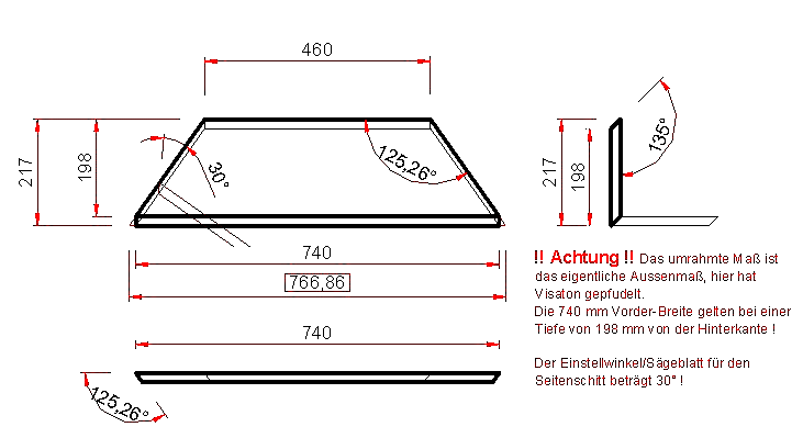 Eine Zeichnung der Trapezbretter. Hier heißt es aufpassen und überlegen, bevor gesägt wird...